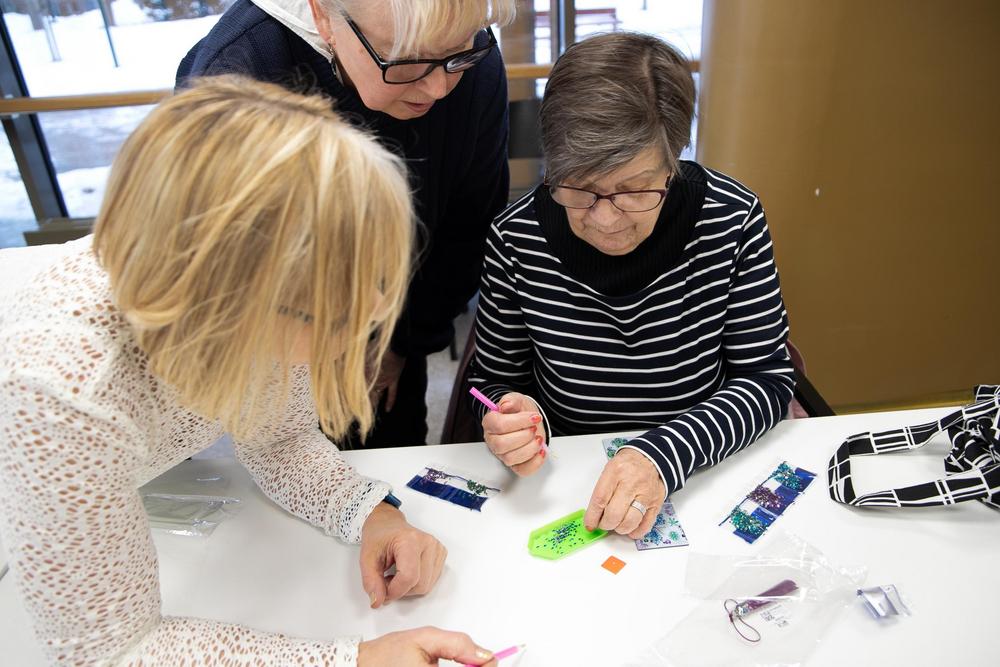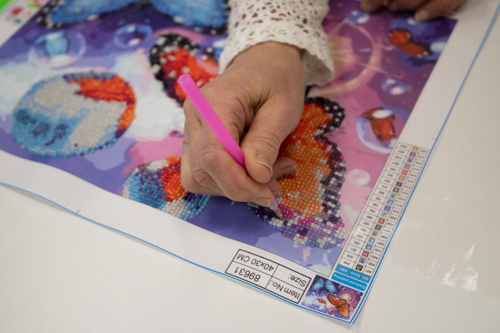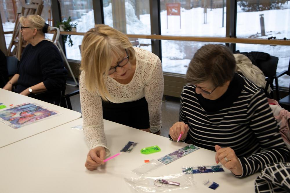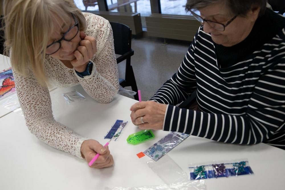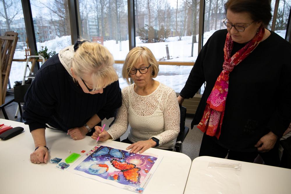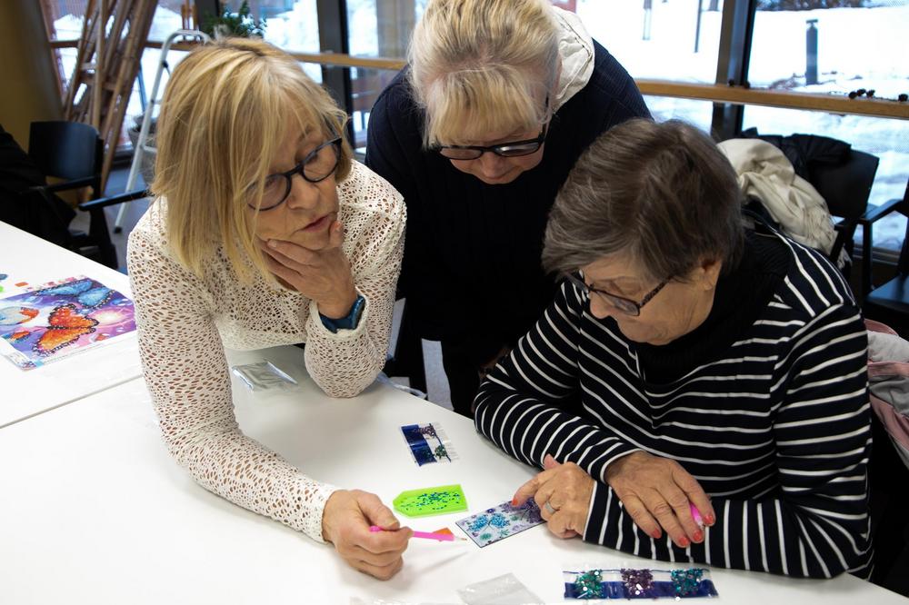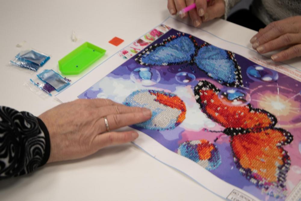 'Näppärät kädet' -kerhossa 13.2.2024 Marja tutustutti timanttimaalaukseen. Selvisi, ettei siinä oikeastaan maalata eikä käytetä timantteja. Mielenkiintoista puuhaa!