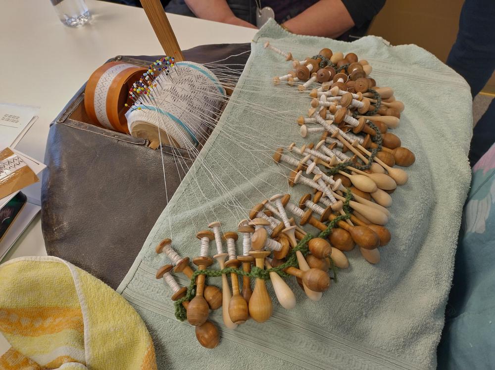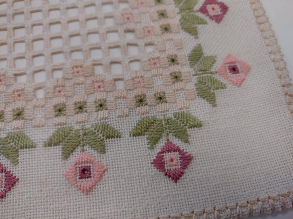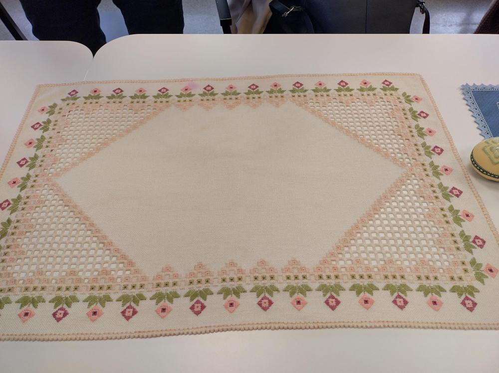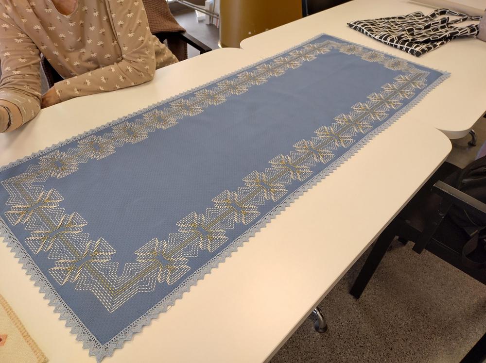 Maaliskuussa 2024 Virtanivan Pirkko esitteli meille Hardanger ja Gerstenkorn kirjontoja.