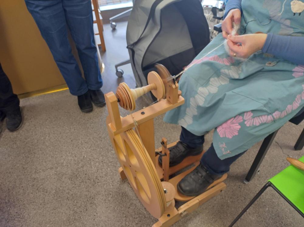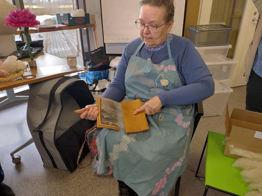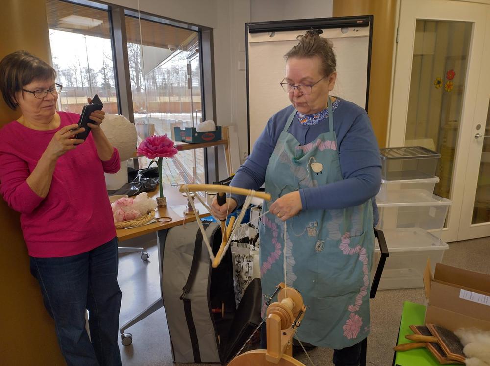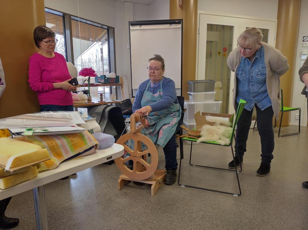 Huhtikuussa 2024 Mirja Niiranen esitteli, miten villaa karstataan ja kehrätään. Myös nypläyksen saloihin tutustuttiin,