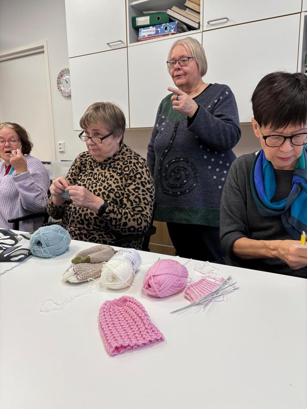 Näppärät kädet -kerhotapaamisessa tiistaina 14.1.2025 aiheena kutominen/neulominen. Keskustelun lisäksi pantiin toimeksi ja aloitettiin pipojen ja sukkien teko vastasyntyneille. Myöhemmin keväällä valmiit työt lahjoitetaan Jorvin sairaalaan.
