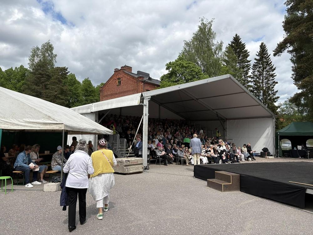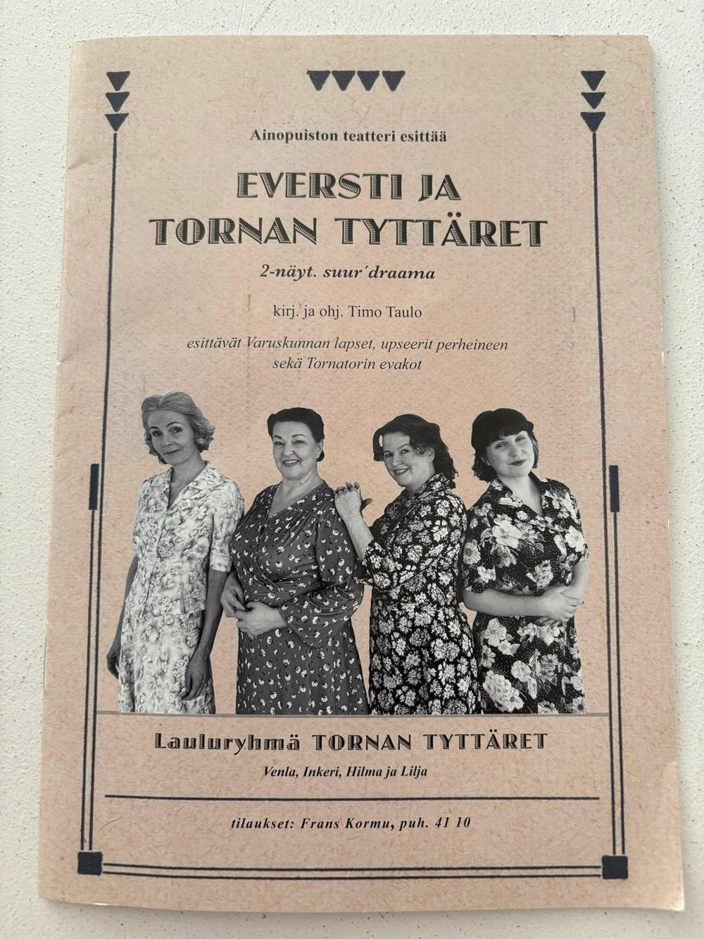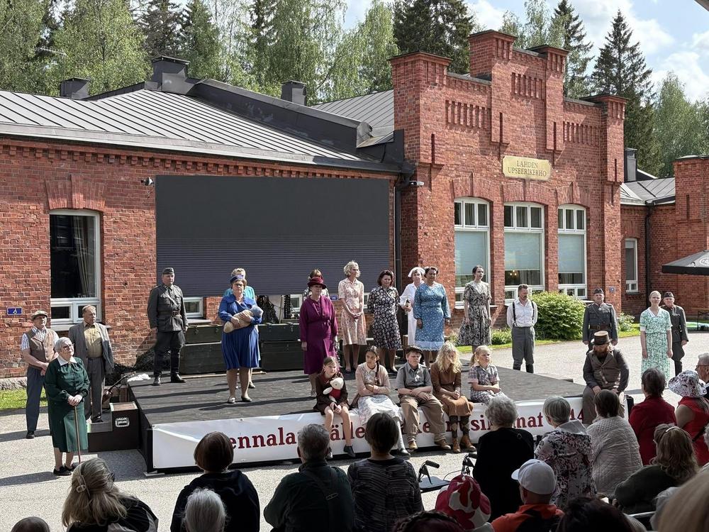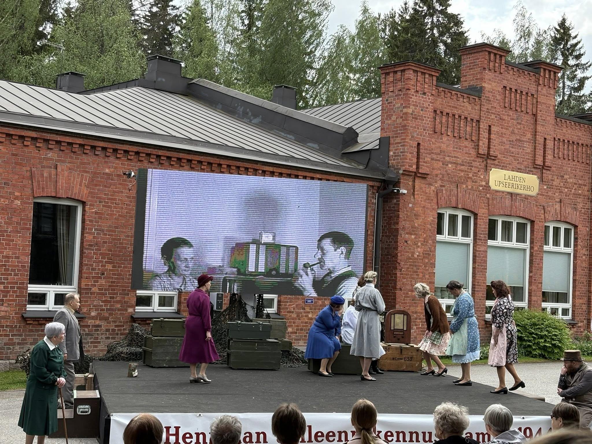 Upseerikerhon eteen pystytetyllä lavalla Ainopuiston teatteri esitti ’Eversti ja Tornan tyttäret’ -kesäteatteriesityksen. Esitys perustui Hennalan 1940-luvun tapahtumiin ja oikeastaan koko Suomen historiaan asekätkentöineen ja evakoineen. Oli hyvä ja vaikuttava esitys!