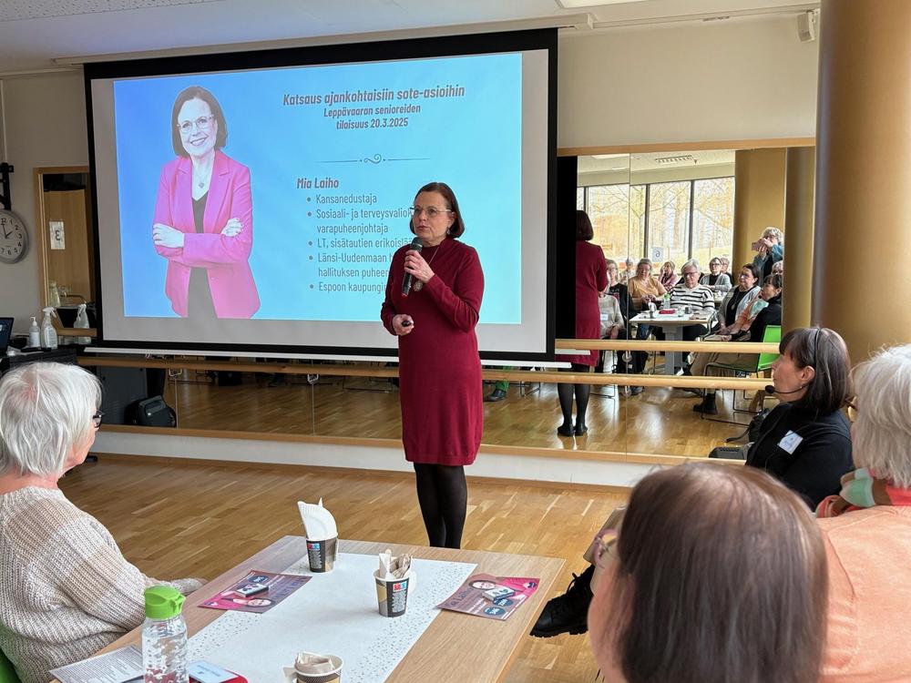 Tiimassa 20.3.2025 saimme vieraaksemme kansanedustaja, Länsi-Uudenmaan hyvinvointialueen aluehallituksen puheenjohtaja Mia Laihon, aiheenaan Ajankohtaista alue- ja kuntavaaleista sekä Sote-kuulumiset.