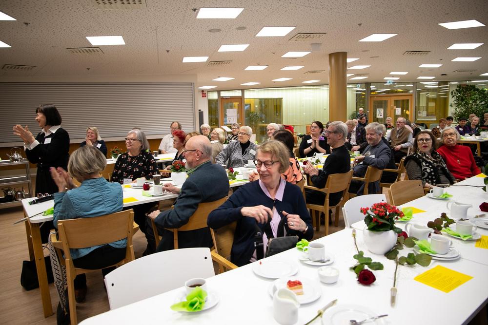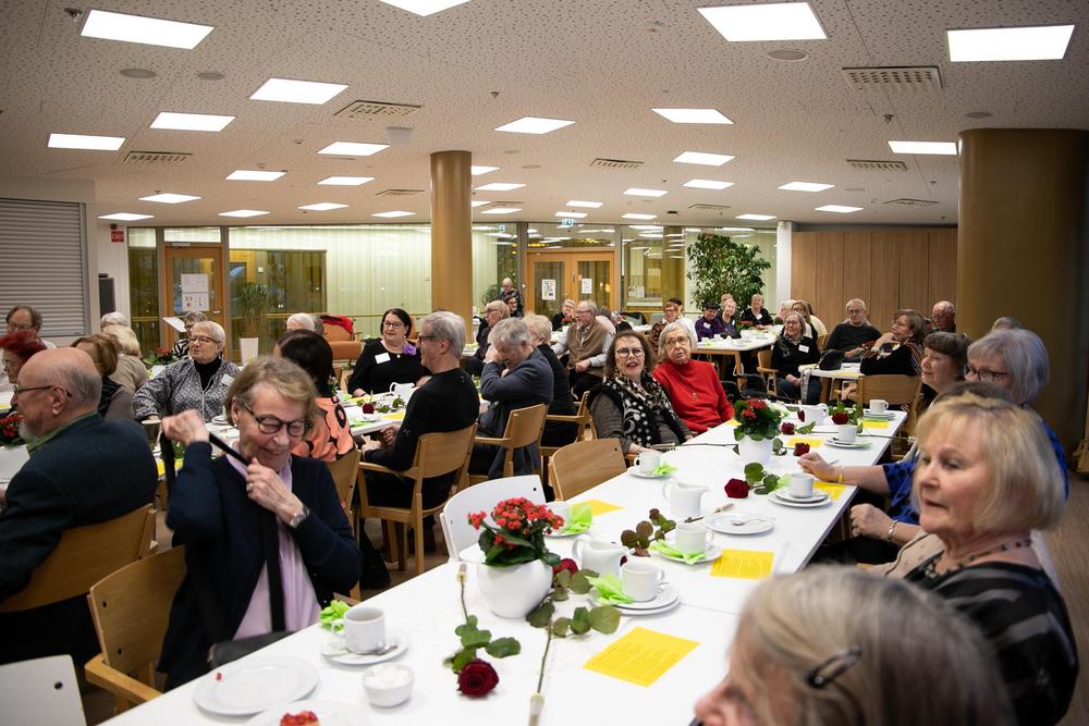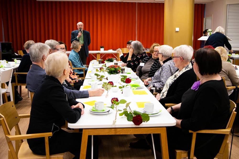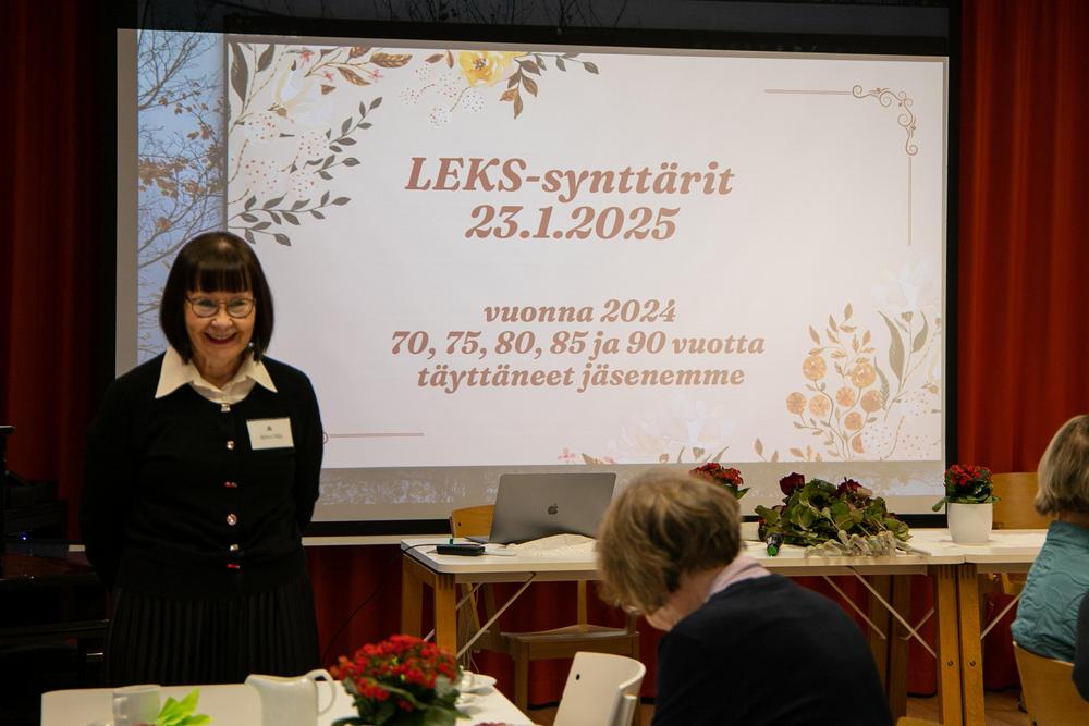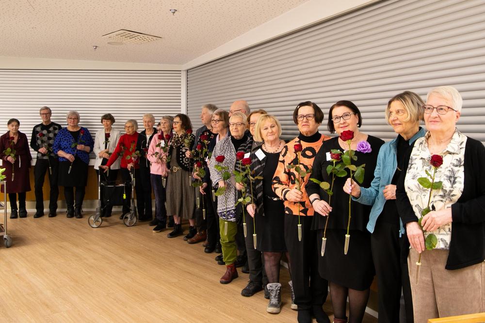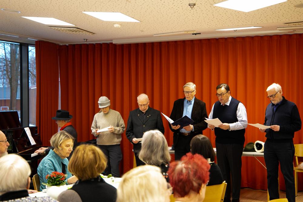 Synttäritiimassa 23.1.2025 juhlittiin vuonna 2024 pyöreitä vuosia täyttäneitä jäseniämme. Heitä oli iso joukko, vaikka ihan kaikki eivät päässeetkään paikalle. Meitä viihdytti yllätysesiintyjänä Leppävaaran rotareiden kuoro.