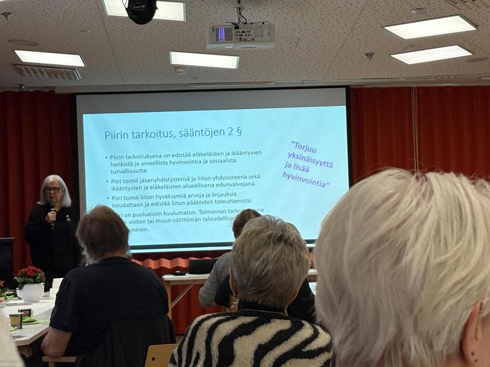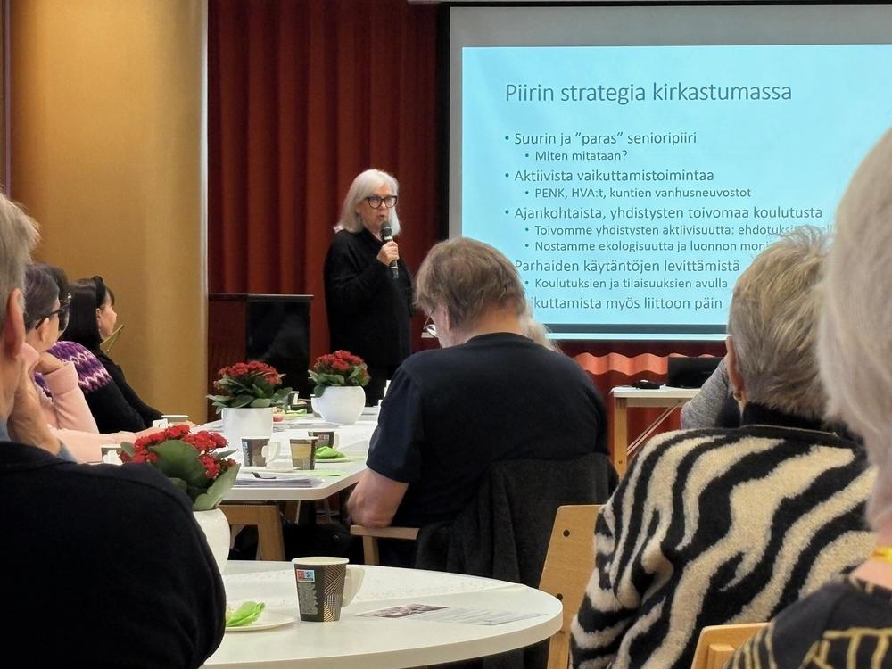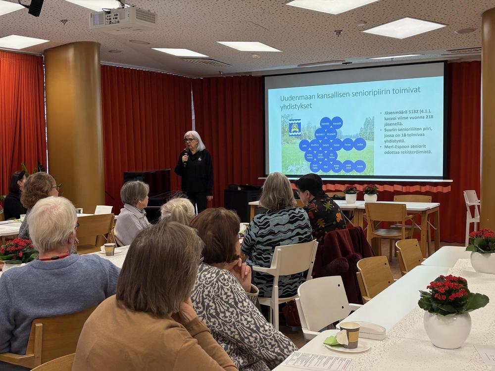 Vuoden ensimmäisessä Tiimassa 9.1.2025 tutustuimme Uudenmaan kansallisen senioripiirin toimintaan. Siitä meille kertoi piirin puheenjohtaja Leena Mäkelä.