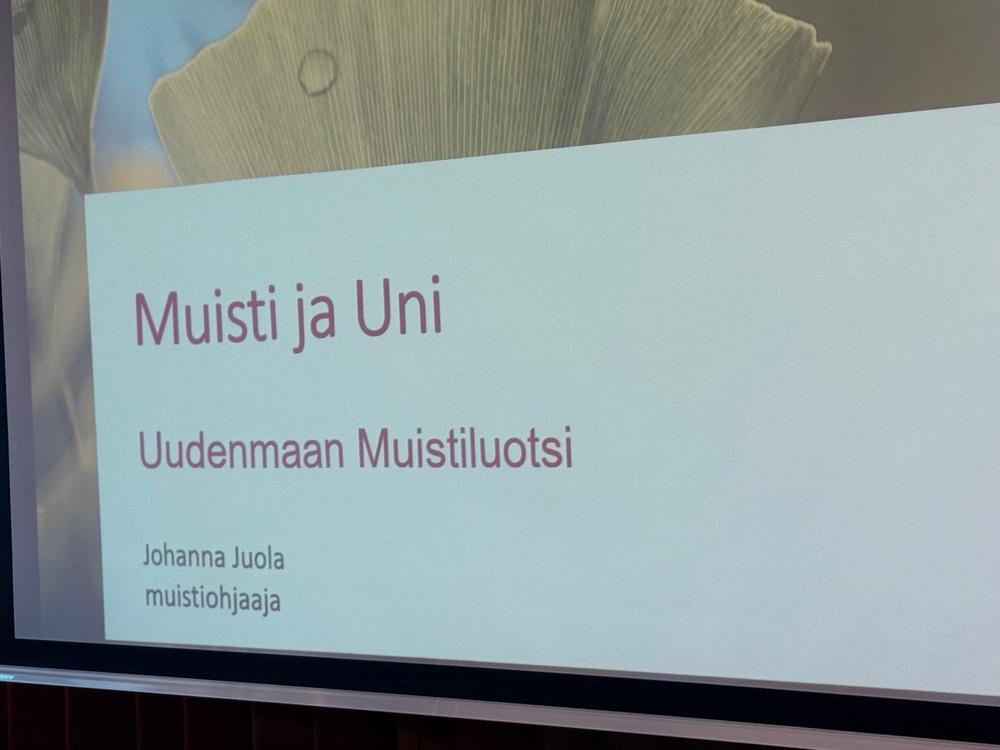 Torstain 6.2.2025 Tiimassa muistiohjaaja Johanna Juola (Uudenmaan Muistiluotsi) kertoi mielenkiintoisia asioita muistista ja unesta.