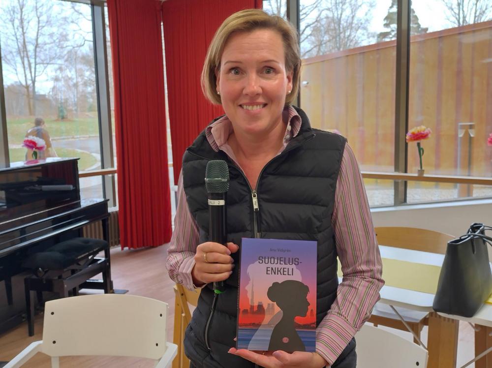 Tiimassa 17.4. Suojelusenkeli - vakoilun värittämä romaani, Anu Vidgrén, esikoiskirjailija esitteli kirjaansa ja kertoi kirjansa synnystä.