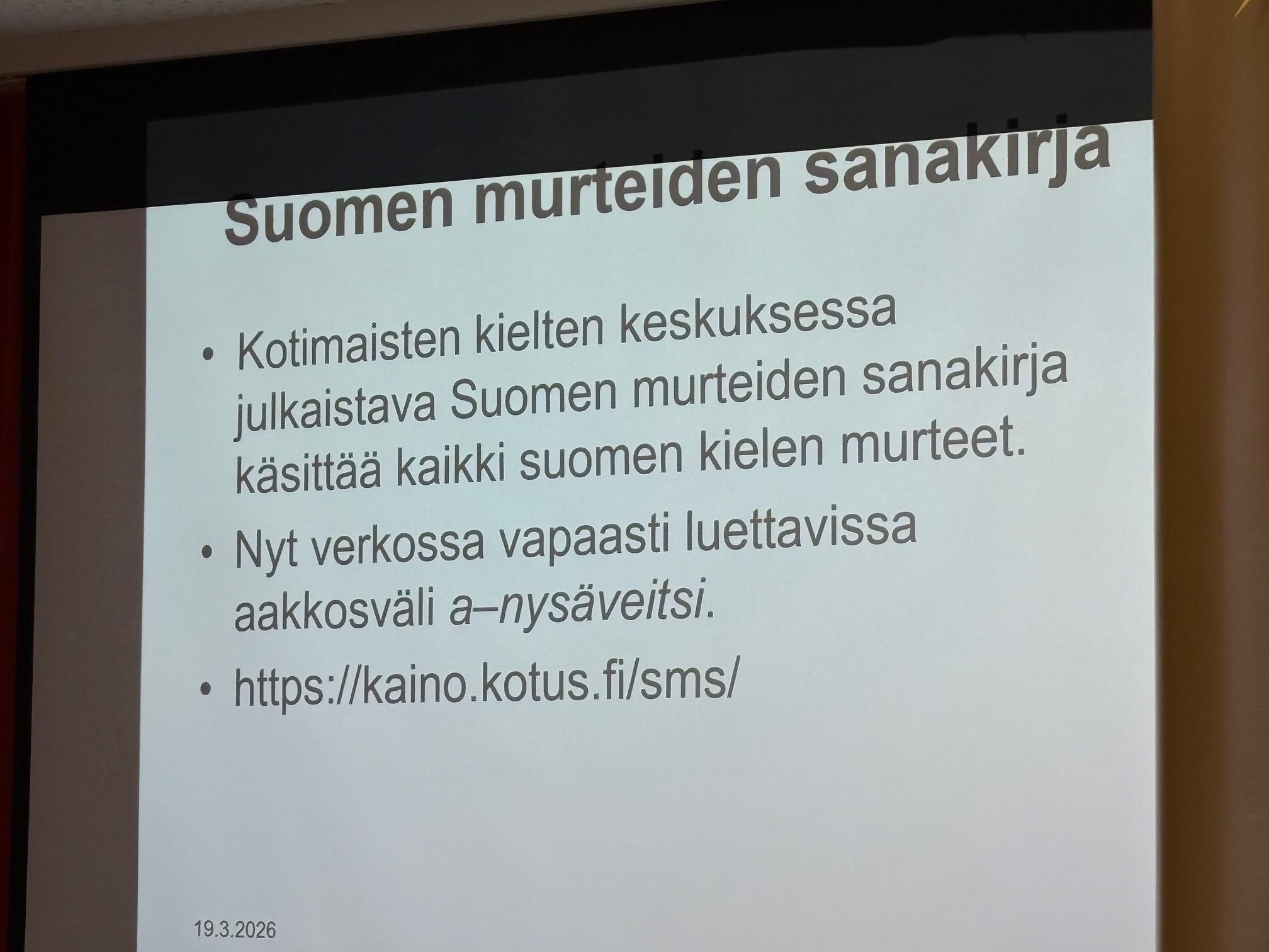 Tiimassa torstaina19.3.2026 kuulimme mielenkiintoisia asioita suomenkielen murteista. Aiheesta kertoi FT Heikki Hurtta, Suomen murteiden sanakirjan entinen päätoimittaja.