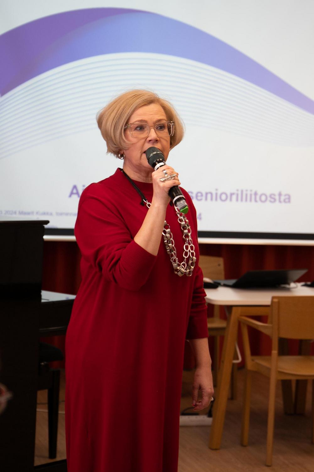 Tiimaan 7.3.2024 saimme vieraaksemme Kansallinen senioriliitto ry:n toiminnanjohtaja Maarit Kuikan. Hän kertoi ajankohtaisia asioita senioriliitosta.