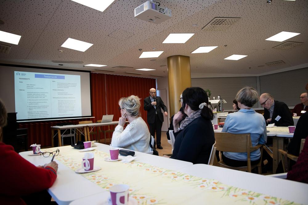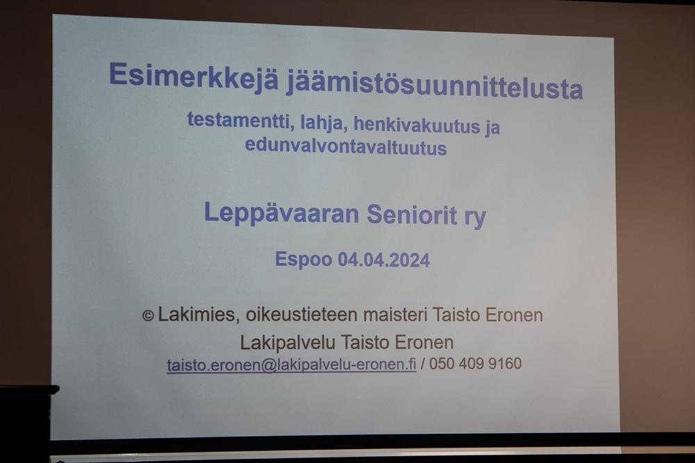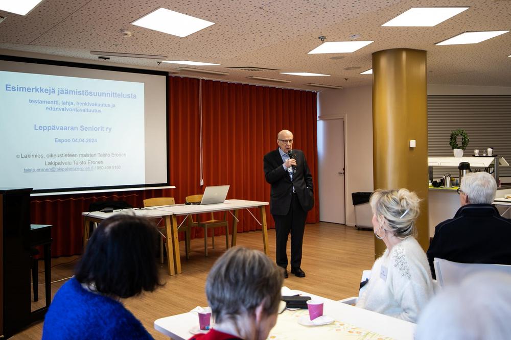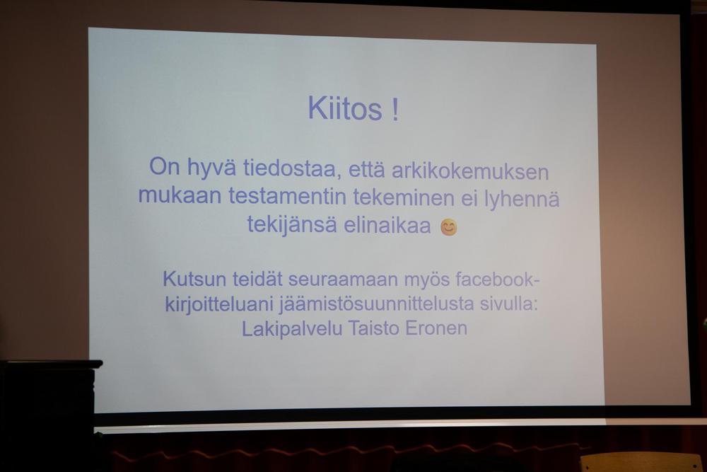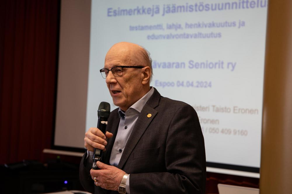 Lakimies oikeustieteen maisteri Taisto Eronen kertoi erittäin mielenkiintoisesti esimerkkien avulla Jäämistösuunnittelusta.