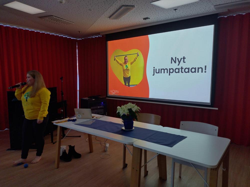 Vuoden ensimmäisessä Tiimassa 11.1.2024 Riia Ahonen ja Iida Saloranta Ilostu Oy:stä kertoivat, miten pysyä liukkaalla pystyssä ja antoivat tietoa kaatumisen aiheuttamista toimenpiteistä ja niiden kustannuksista. Päästiin harjoittelemaan Footbic-jumppaakin.