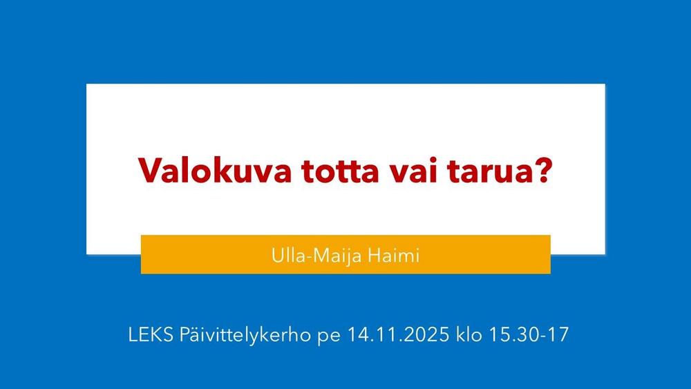 14.11.2025 Valokuva totta vai tarua?