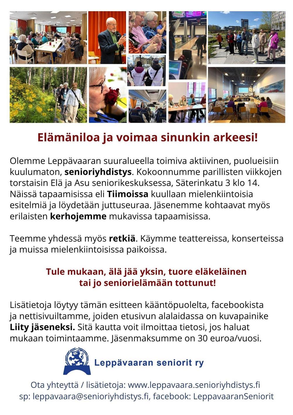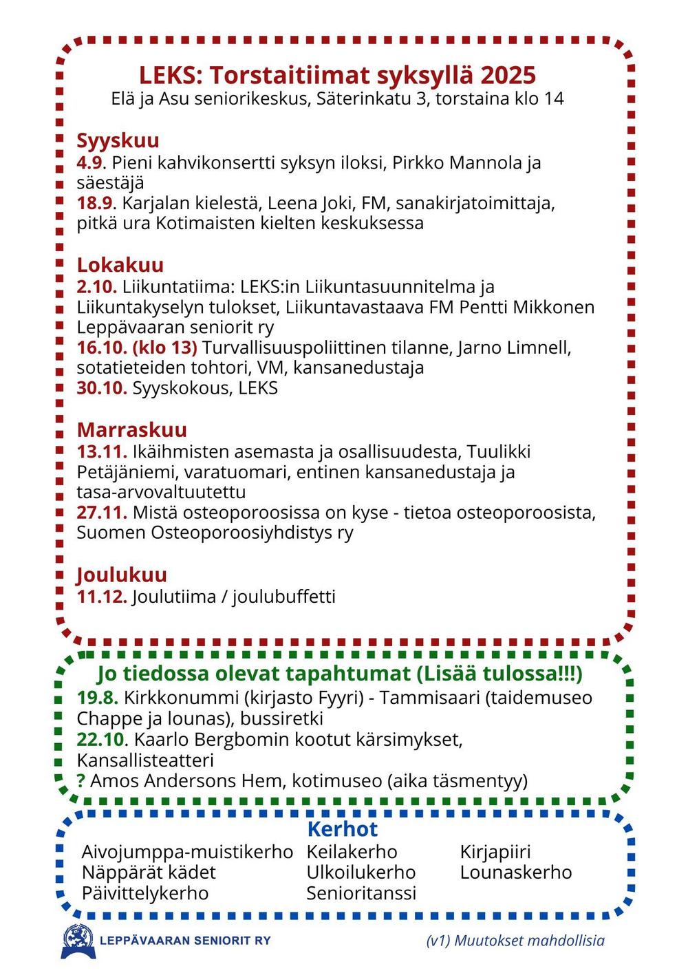 Leppävaaran seniorit ry:n esite, syksy 2025 (mukana päätiedot syksyn tapahtumista)