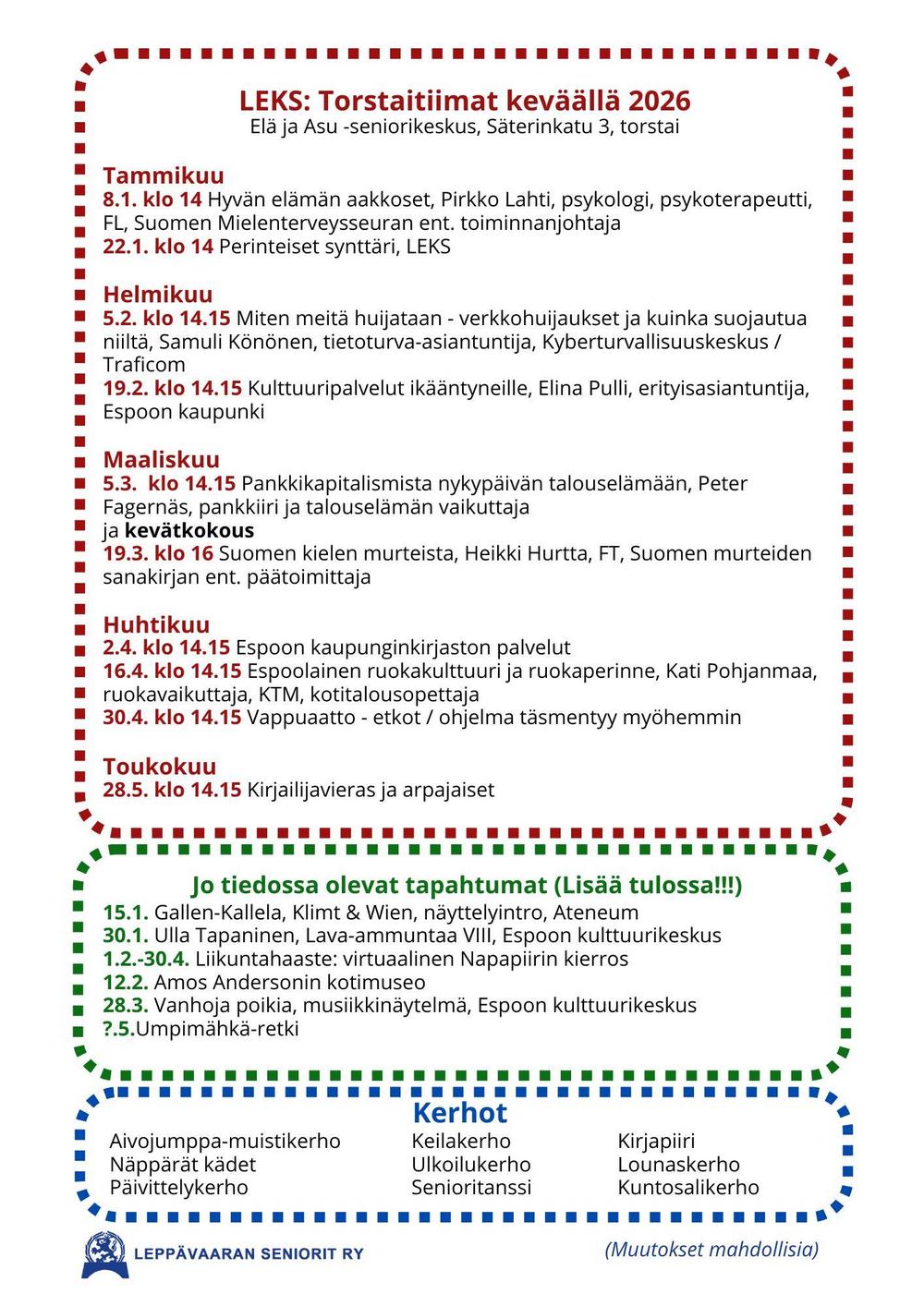 Leppävaaran seniorit ry:n kevään 2026 esite (A4)